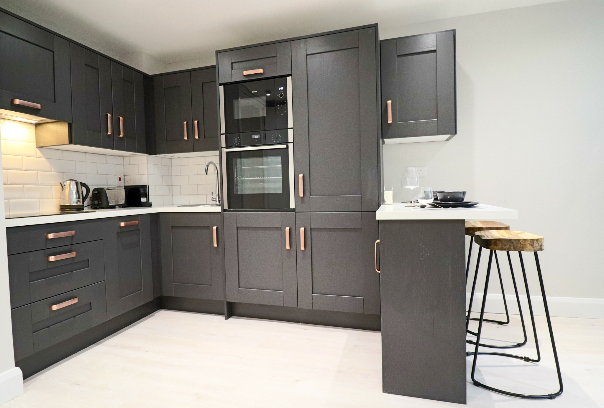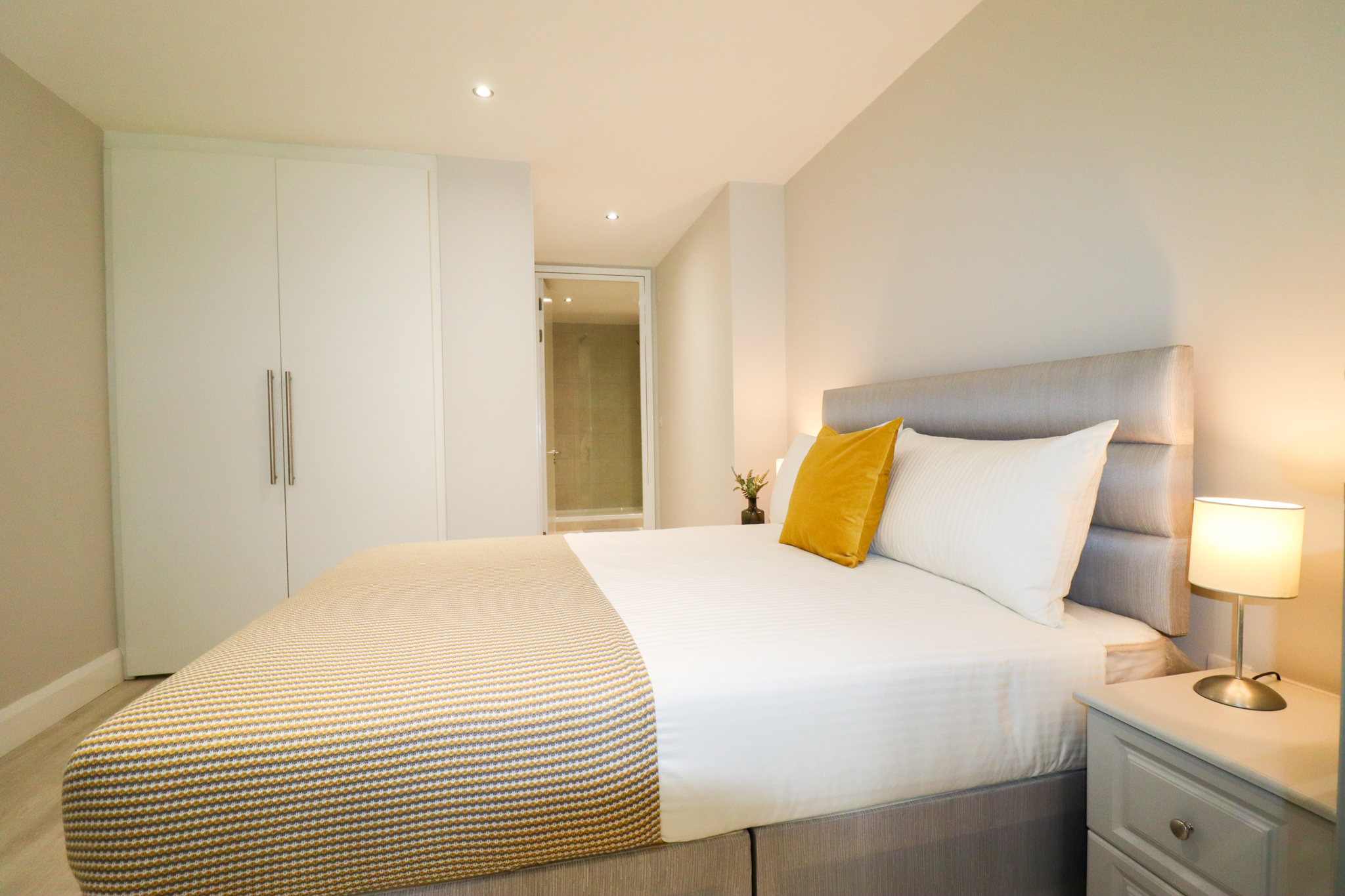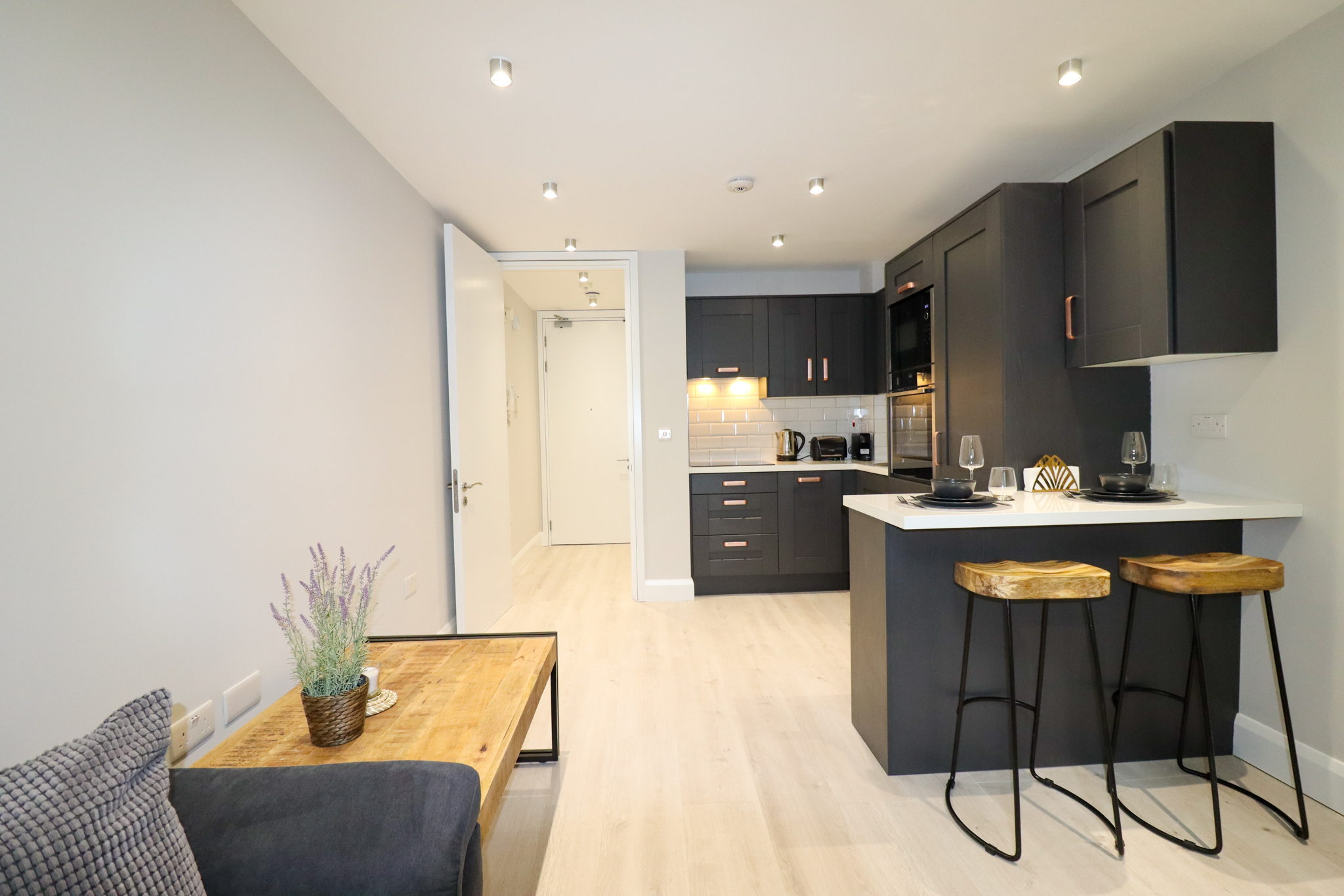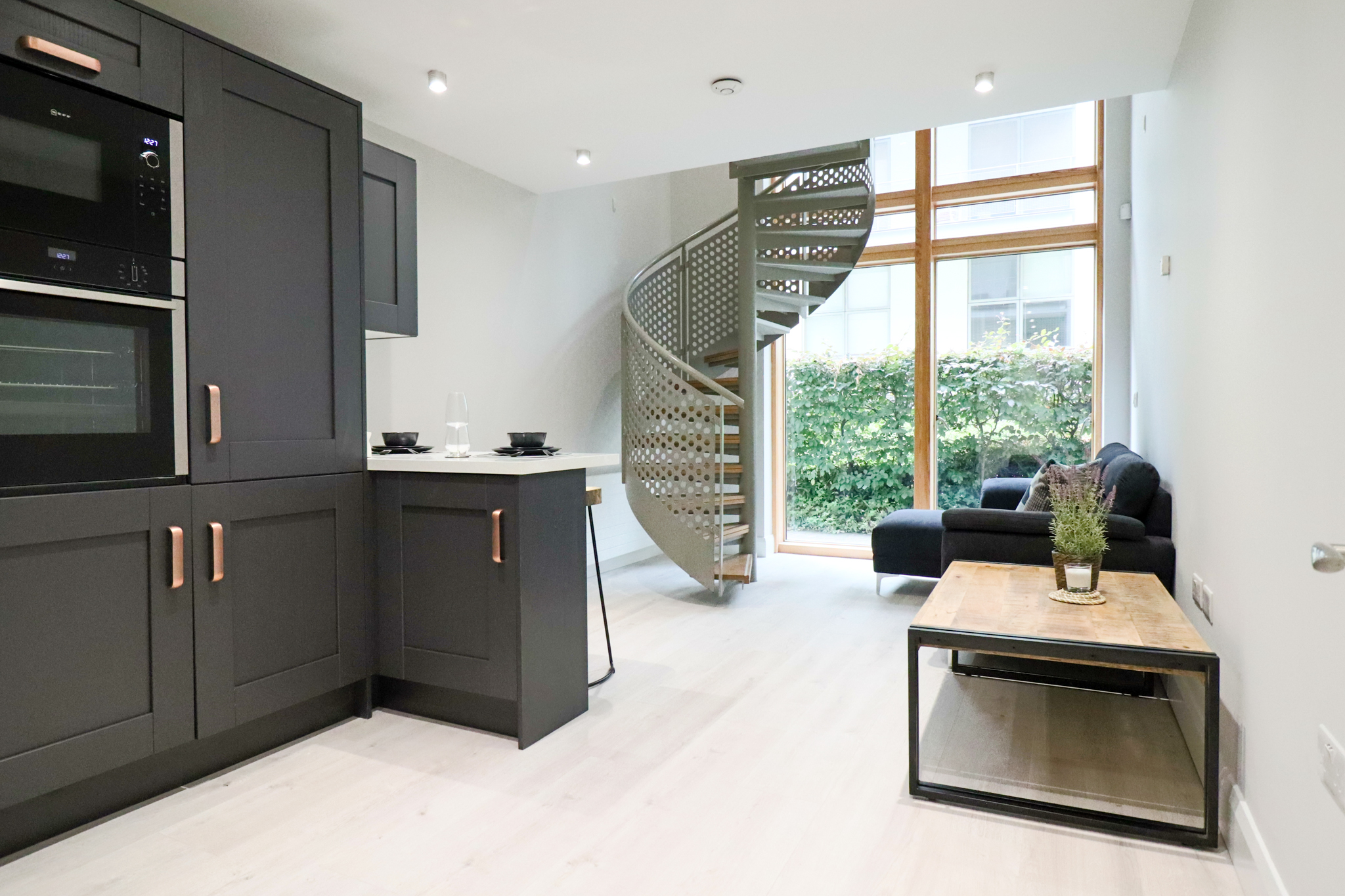 Full Turnkey solution – Full reburbishment of 1 bedroom and 2 bathroom apartment, with bedroom and ensuite situtaed on a mezzamine level. Complete new interiors including kitchen, appliances and furniture